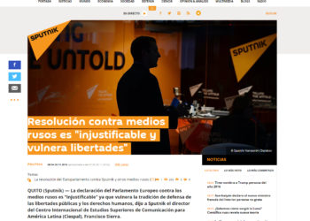 126350 QUITO (Sputnik) — La declaración del Parlamento Europeo contra los medios rusos es «injustificable» ya que vulnera la tradición de defensa de las libertades públicas y los derechos humanos, dijo a Sputnik el director del Centro Internacional de Estudios Superiores de Comunicación para América Latina (Ciespal), Francisco Sierra.