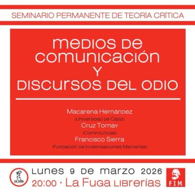 El lunes 9 de marzo, en el local de La Fuga, a las 20h: Medios de comunicación y discursos del odio, con Macarena Hernández. Universidad de Cádiz, Cruz Tornay. COMPOLITICAS y Javier Moreno.