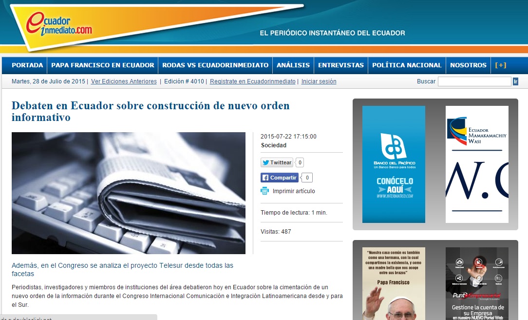 Este encuentro internacional que tuvo como consigna “Comunicación e integración latinoamericana desde y para el Sur” permitió debatir sobre los retos que tiene la region desde el punto de vista de los procesos políticos emancipatorios.